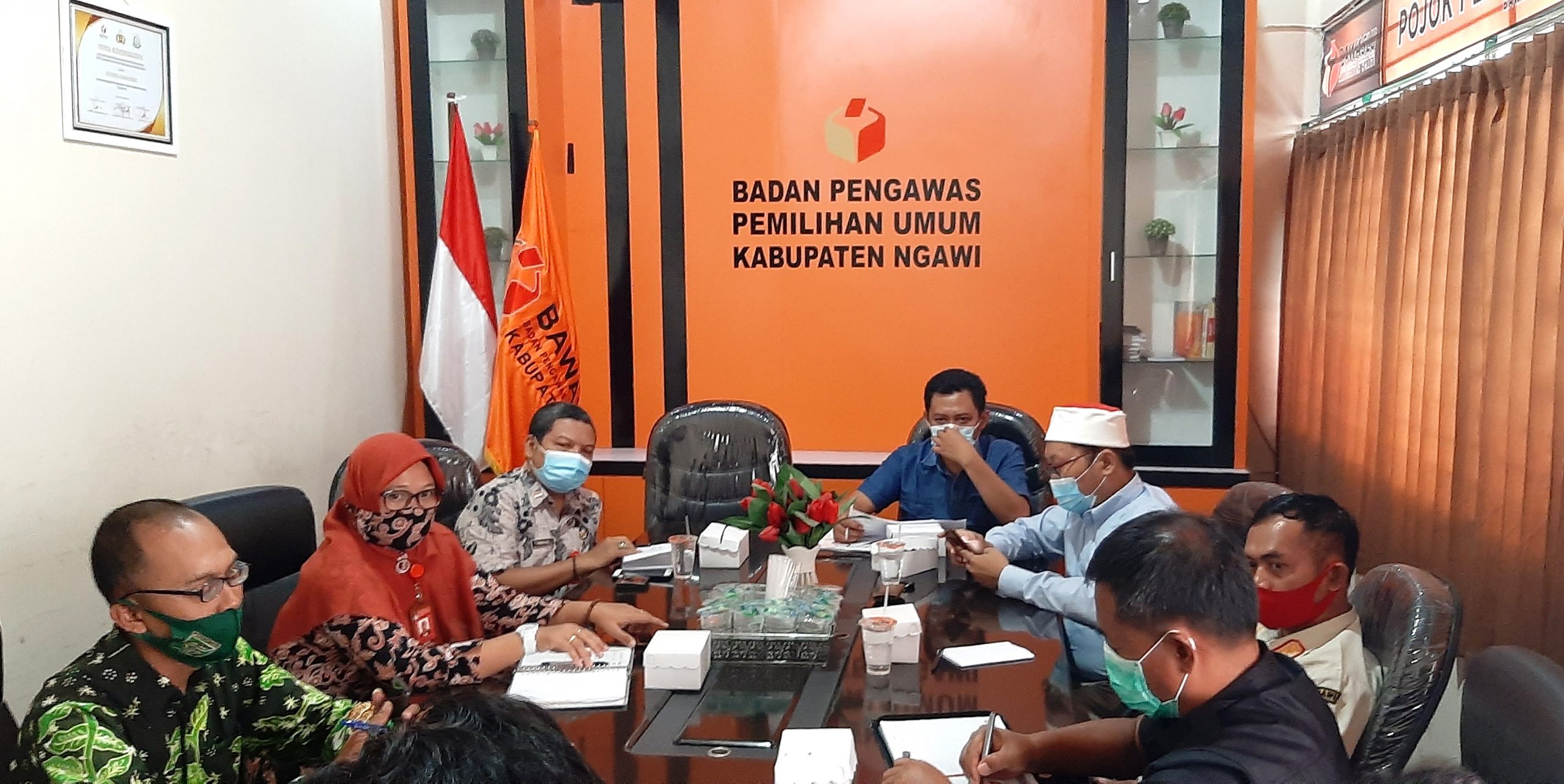 Ngawi,BawasluKabupatenNgawi, Bawaslu Kabupaten Ngawi adakan Rapat Koordinasi dengan Kelompok Kerja (Pokja) Pengawasan Kampanye dan Penertiban Alat Peraga Kampanye (APK) diKantor Bawaslu Kabupaten Ngawi 05/10/2020.