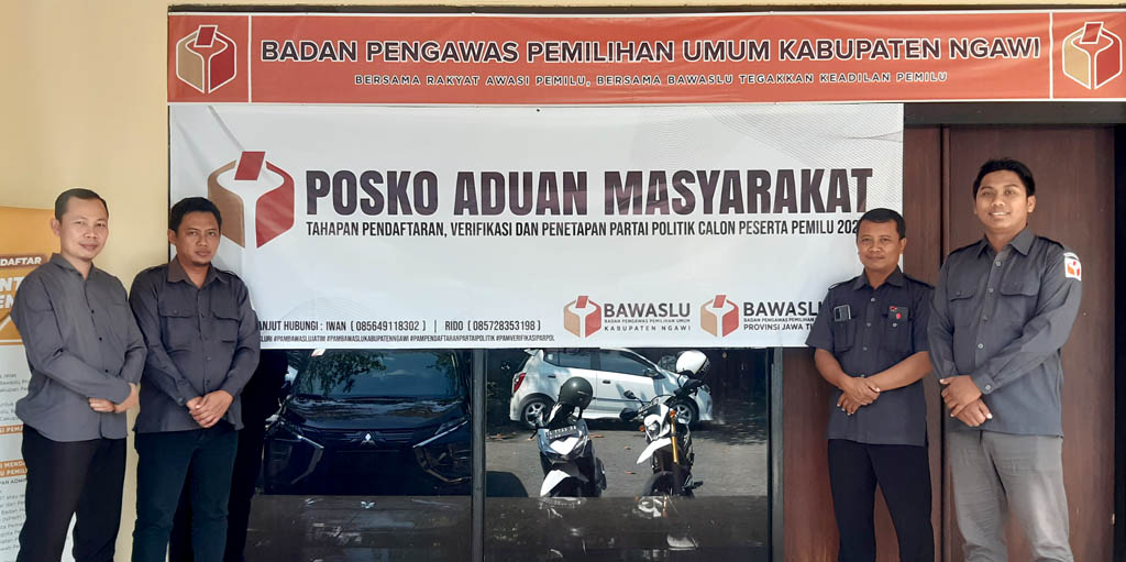 Bawaslu Kabupaten Ngawi mendasar perihal tersebut pada hari ini, Senin (15/08/2022) Launching Posko Aduan Masyarakat ( PAM) Pendaftaran dan Verifikasi Peserta Pemilu 2024, untuk mengecek apakah masyarakat namanya terdaftar sebagai keanggotaan Partai Politik bisa klik link ini https://infopemilu.kpu.go.id/Pemilu/Cari_nik, jika masyarakat merasa bukan merupakan anggota partai politik atau keberatan namanya terdaftar sebagai anggota partai politik pada link tersebut bisa melaporkan ke Bawaslu Kabupaten Ngawi dan bisa klik link aduan Daring dari Bawaslu Kabupaten Ngawi https://forms.gle/Y57fXqFgEQL5aRXKA. Ungkap Syaifudin Kordiv Pengawasan dan Hubal Bawaslu Kabupaten Ngawi.