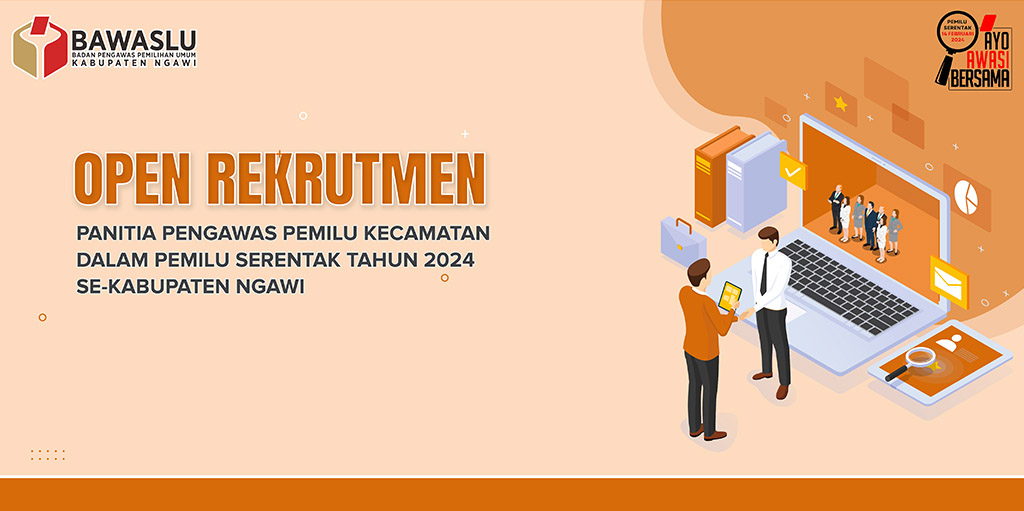 Ngawi, Bawaslu Kabupaten Ngawi - Badan Pengawas Pemilihan Umum (Bawaslu) Kabupaten Ngawi memanggil putra/putri terbaik se-Kabupaten Ngawi untuk bergabung menjadi Panitia Pengawas Pemilu Kecamatan (Panwascam) dalam Pemilu serentak tahun 2024, dengan persyaratan sebagai berikut: