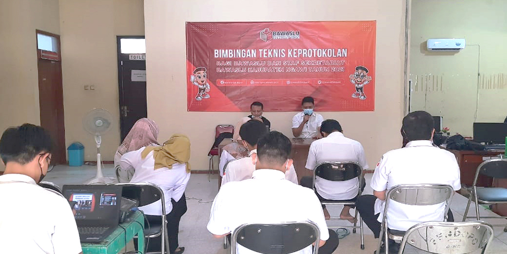 Ngawi.Bawslu Kabupaten Ngawi - Bawaslu Kabupaten Ngawi Hari ini (9/6/2021) mengadakan Bimbingan Teknis ( Bimtek) Keprotokolan Bagi Sekretariat Bawaslu Kabupaten Ngawi.