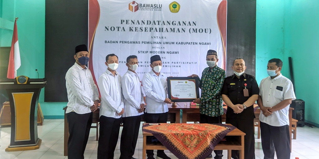 Ngawi, Bawaslu Kabupaten Ngawi - Perjanjian Kerjasama dengan Lembaga-lembaga pendidikan yang ada di Ngawi kembali terjalin lagi. Kali ini Bawaslu Kabupaten Ngawi menjalin kerjasama dengan Lembaga Sekolah Tinggi Keguruan dan Ilmu Pendidikan (STKIP) Modern Ngawi. Kampus yang terletak di Ring Road Bagian Barat Jl. Soekarno Hatta ini menjadi sasaran untuk diajak kerjasama dalam upaya pengembangan Pendidikan Politik, Pemilu dan Demokrasi sebagai upaya mendukung kerjasama dalam pencegahan, pengawasan partisipatif dan penanganan pelanggaran dalam menghadapi pemilu dan pemilihan serentak Tahun 2024.