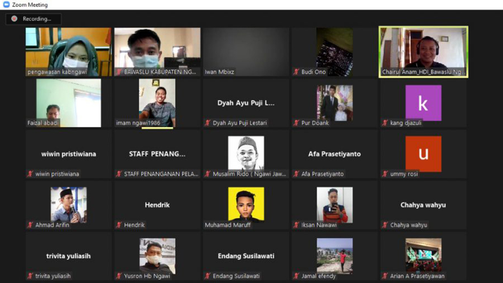 Yusron Habibi Anggota Bawaslu Ngawi Koordiv Penanganan Pelanggaran yang juga Narasumber, beliau diketahui masih dalam kondisi Karantina, mengatakan tetap jaga protokol kesehatan dalam keseharian dan semoga kita tetap dalam kondisi sehat dalam menjalankan kegiatan sehari - hari.