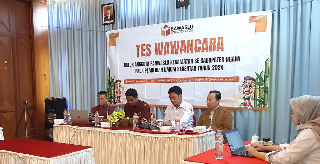 Imam Munasir Kordiv SDM, Organisasi dan Pelatihan Bawaslu Ngawi mengatakan "Rekrutmen Calon Panwaslu Kecamatan sampai hari ini, Rabu (19/10/2022) telah sampai pada tahap seleksi wawancara, jumlah peserta tes wawancara 114 Orang atau 2 kali kebutuhan calon Panwaslu Kecamatan, wawancara hari pertama ini adalah 8 (delapan) kecamatan yaitu Ngawi, Geneng, Kasreman, Pitu, Karangjati, Gerih, Sine, dan Ngrambe".