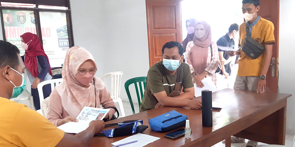 Sebelum dilakukan vaksinasi, semua peserta melakukan proses skrining cek tensi darah terlebih dahulu sebelum dilakukan penyuntikan vaksinasi.