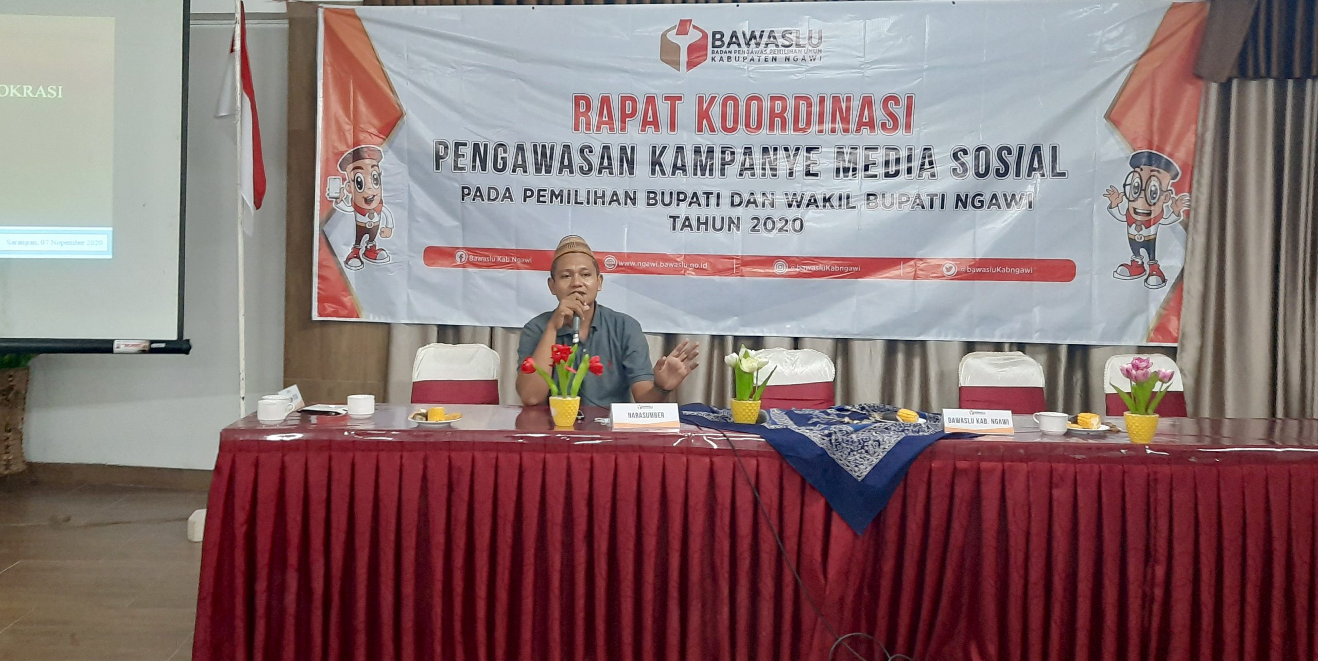 Ngawi, Bawaslu Kabupaten Ngawi, Berjalanya tahapan Kampanye spesifik Pengawasan di Media Sosial, Bawaslu Kabupaten Ngawi adakan Rapat Koordinasi Pengawasan Kampanye Media Sosial pada Pemilihan Bupati dan Wakil Bupati Ngawi Tahun 2020 bersama 19 Pengawas Kecamatan divisi PHL Se Kabupaten Ngawi. 08 /11/2020