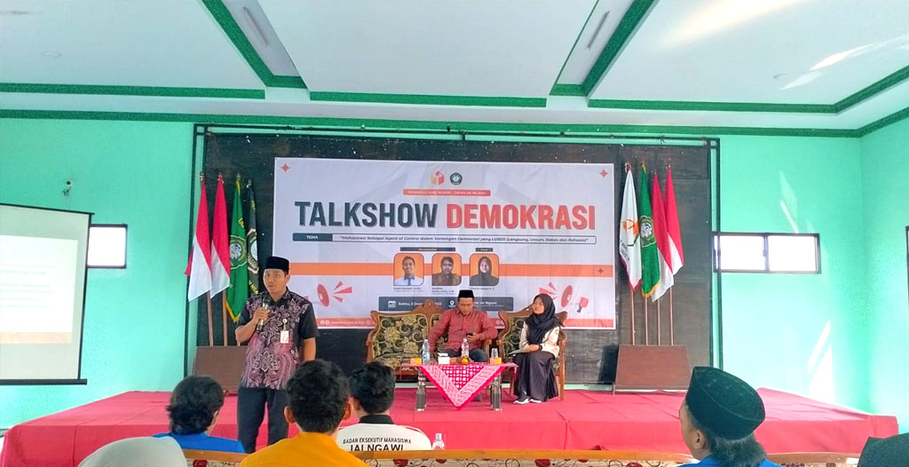 Ngawi - Bawaslu Kabupaten Ngawi - Bawaslu Kabupaten Ngawi pada kesempatan ini, Sabtu (3/12/2022) menjadi Narasumber pada acara Talk Show Demokrasi di Kampus Institut Agama Islam (IAI) Ngawi, Narasumber dari Bawaslu Ngawi Imam Munasir Kordiv SDM, Organisasi dan Pelatihan.
