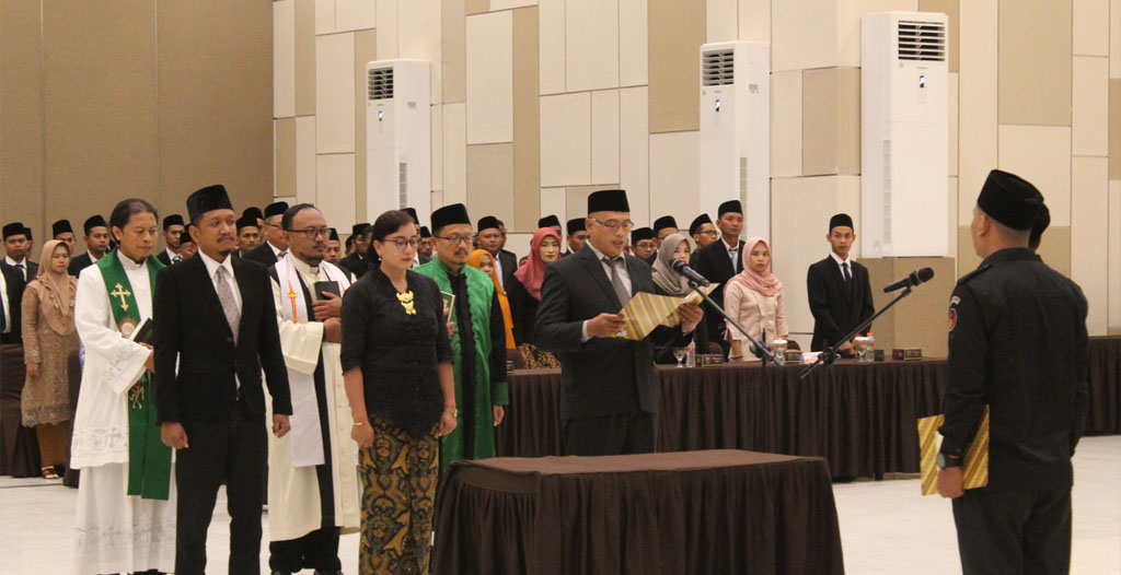 PELANTIKAN 57 ANGGOTA PANWASLU KECAMATAN SE KABUPATEN NGAWI ,KETUA BAWASLU NGAWI : INGATKAN NETRALITAS, INTEGRITAS DAN PROFESIONALITAS