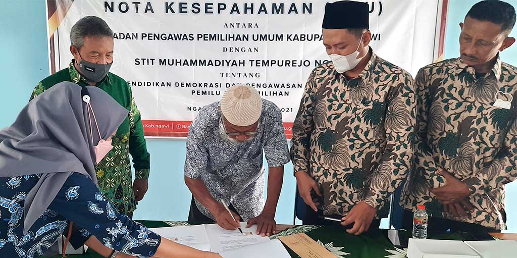 Kesepakatan MOU tersebut di tandatangani langsung oleh kedua pihak yang bersangkutan yaitu Gucik Sanusi Selaku Ketua STIT Muhammadiyah Tempurejo Ngawi dan Yusron Habibi selaku Ketua BAWASLU Kabupaten Ngawi. Kegiatan dilanjutkan dengan penyerahan Piagam MoU yang sudah ditandatangani oleh masing-masing pihak.