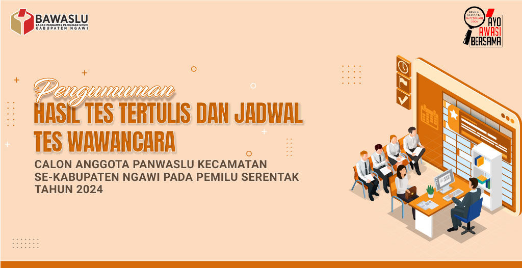 PENGUMUMAN HASIL TES TERTULIS DAN JADWAL TES WAWANCARA CALON ANGGOTA PANWASLU KECAMATAN SE KABUPATEN NGAWI PADA PEMILIHAN UMUM SERENTAK TAHUN 2024