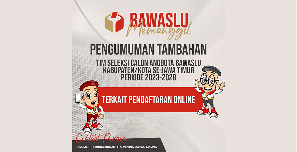 Mengacu pada pengumuman pendaftaran calon Anggota Bawaslu Kabupaten/Kota Provinsi Jawa Timur setiap zona, disampaikan pengumuman tambahan sebagai berikut:
