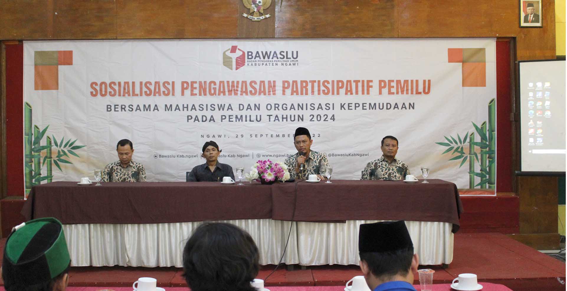Syaifudin Kordiv Pencegahan, Partisipasi Masyarakat dan Hubungan Masyarakat Bawaslu Kabupaten Ngawi Menambahkan "Sosialisasi Pengawasan Partisipasif Pemilu kita Bersinergi Dengan Mahasiswa dan organisasi kepemudaan (OKP) gunanya nanti ketika Bawaslu Launching Program Sekolah Kader Pengawas Partisipatif (SKPP), Kampung Anti Politik Uang dan Mitra Desa Pengawasan Pada pemilu tahun 2024 kita sudah menyiapkan SDM untuk mendukung program tersebut".