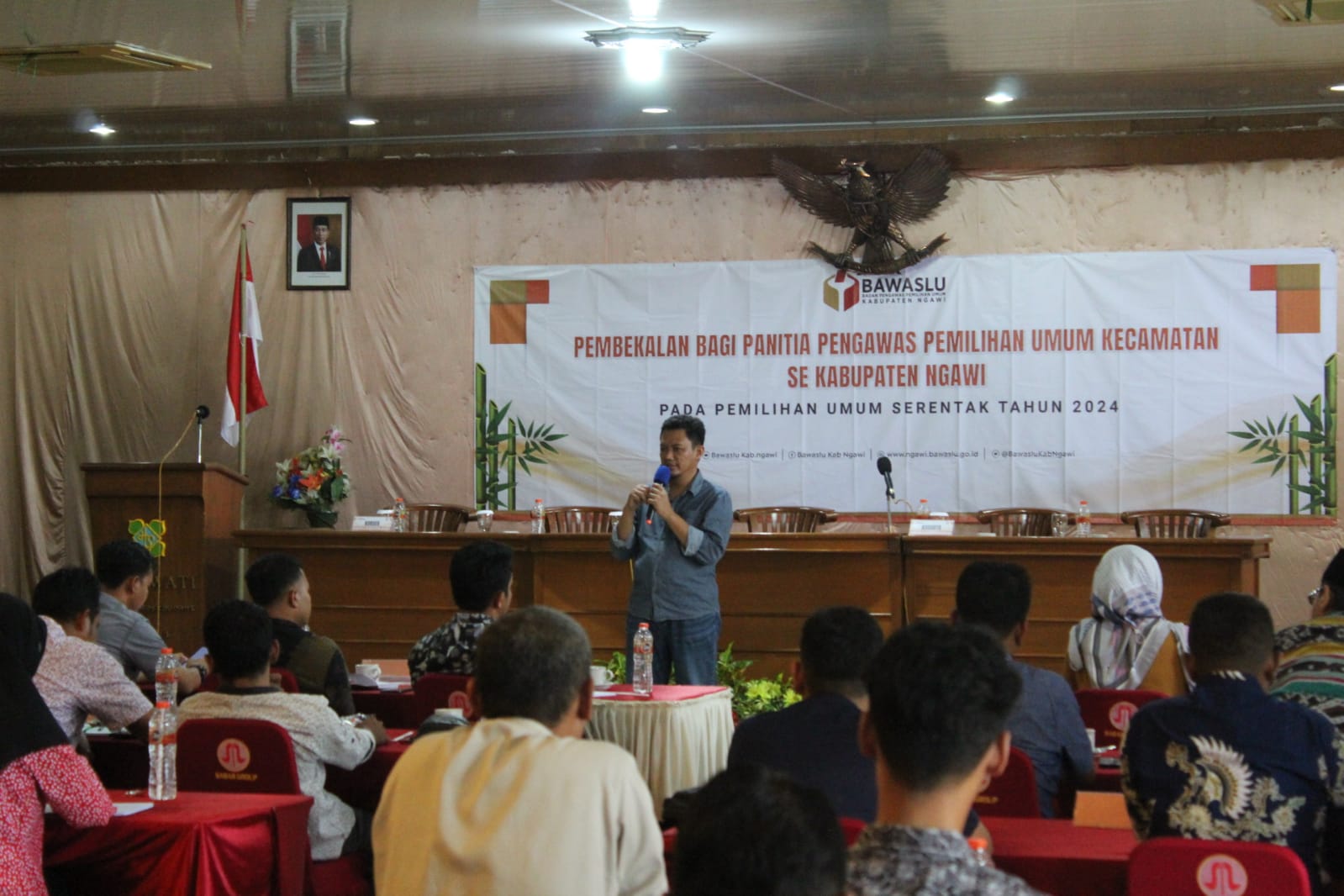 Bawaslu Kabupaten Ngawi laksanakan Pembekalan kepada 57 Anggota Panitia Pengawas Pemilihan Umum ( Panwaslu ) Kecamatan Se Kabupaten Ngawi, Pembekalan bimbingan perdana kepada Panwaslu Kecamatan terpilih pasca pelantikan, Pembekalan di laksanakan Selama 2 ( dua ) hari dari tanggal 6 - 7 November 2022 di Hotel Sukowati Hall Ngawi dengan Narasumber dari internal Jajaran Pimpinan Bawaslu Kabupaten Ngawi.
