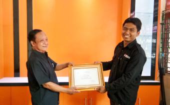 Badan Pengawas Pemilihan Umum Kabupaten Ngawi menyerahkan sertifikat akreditasi Pemantau Pemilu 2019 kepada Lembaga Aliansi Indonesia Kabupaten Ngawi di Kantor Bawaslu Kabupaten Ngawi, Jl. MH.