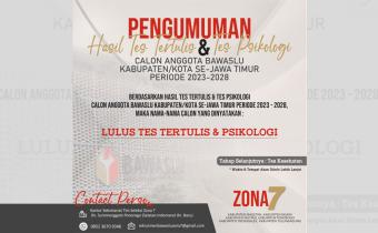 Ngawi, Bawaslu Kabupaten Ngawi - Dalam rangka melaksanakan amanat Undang-Undang Nomor 7 Tahun 2017 tentang Pemilihan Umum setelah melakukan penilaian atas Tes Tertulis dan Tes Psikologi Calon Anggota Bawaslu Kabupaten/ Kota Zona 7, bersama ini kami umumkan nama-nama yang