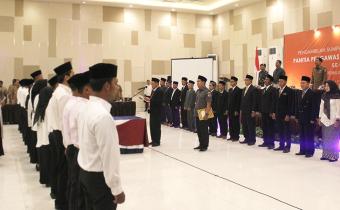 Ngawi, Bawaslu kabupaten Ngawi - Bawaslu Kabupaten Ngawi bersama 19 ketua Panwaslu Kecamatan melantik dan mengambil sumpah jabatan Panwaslu Kelurahan dan Desa sejumlah 217 Orang, Pelantikan di laksanakan pada hari ini, Senin (6/02/2023) di Gedung Convention Hall Kurnia N