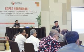 Ngawi, Bawaslu Kabupaten Ngawi - Bawaslu Kabupaten Ngawi melaksanakan kegiatan pada hari ini, Selasa (29/11/2022) Rapat koordinasi Penanganan temuan dan laporan pelanggaran tindak pidana dalam sentra Gakkumdu Bawaslu Kabupaten Ngawi, di Ngawi.