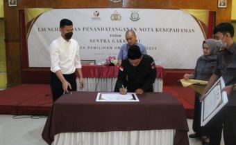Badan Pengawas Pemilu (Bawaslu) Kabupaten Ngawi bersama Kepolisian Resort Ngawi dan Kejaksaan Negeri Ngawi menandatangani Nota Kesepakatan dalam Sentra Gakkumdu Pemilihan Umum Tahun 2024 pada hari ini, Jumat (28/10/2022), Pelaksanaan Kegiatan di Notosuman Convention Hall Ngawi.
