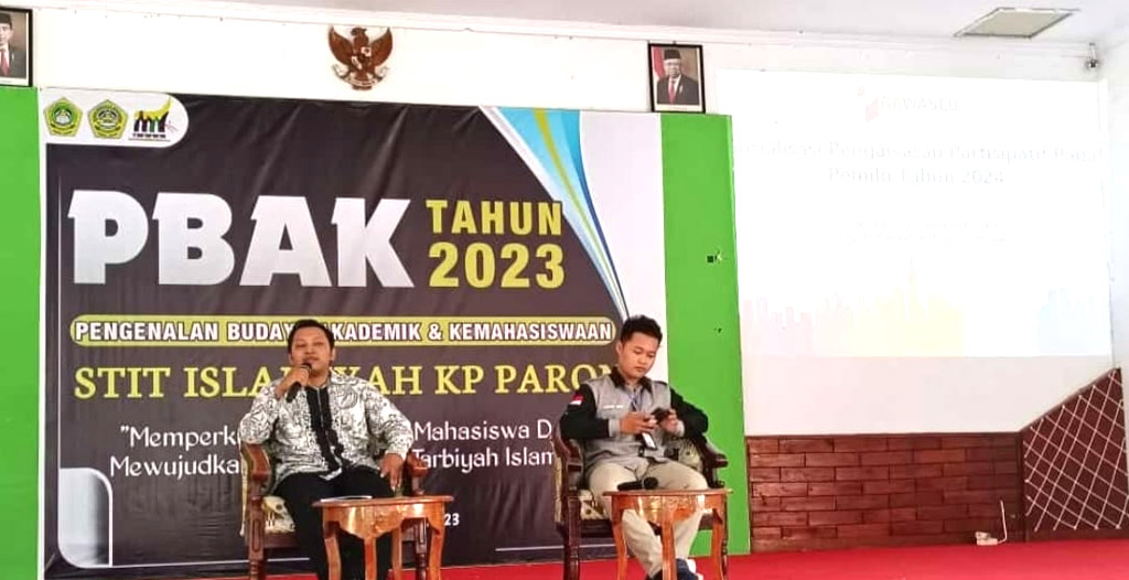 Bawaslu Kabupaten Ngawi pada kesempatan ini diwakilkan Oleh Ageng Pristiwa Sakti menjadi Narasumber di Kampus STIT Islamiyah KP Paron pada acara PBAK. Kegiatan tersebut merupakan tindak lanjut dari kerjasama STIT KP Paron Ngawi dengan Bawaslu Kabupaten Ngawi terkait Pengawasan Partisipatif.
