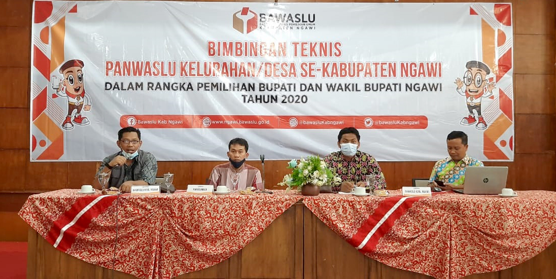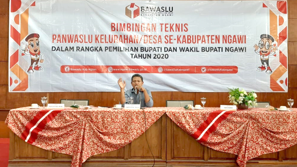 Abjudin widiyas Nursanto selaku Ketua Bawaslu Kabupaten Ngawi mengatakan, “kegiatan bimtek ini dilaksanakan sebagai upaya meningkatkan kapasitas pengawas kelurahan/desa dalam menghadapi pemungutan dan penghitungan suara pada 9 desember 2020 nanti”.