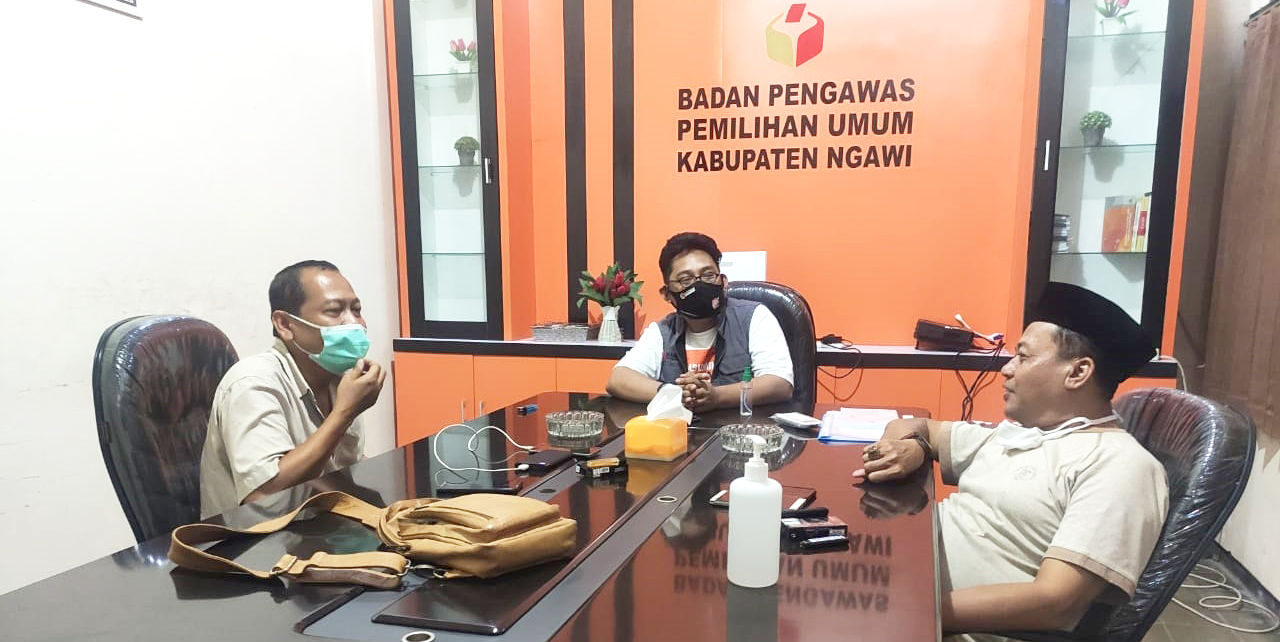 Abjudin Widiyas Nursanto menjelaskan Pada tahapan yang sedang berlangsung pada dimulai hari ini yaitu Pendaftaran Pasangan Calon dari 4 September – 6 September 2020, maka dengan berlangsungnya tahapan tersebut kita sudah membuat himbauan kepada ketua Partai Politik se Kabupaten Ngawi perihal potensi pelanggaran pada tahapan pendaftaran paslon hingga protokol kesehatan yang wajib diterapkan bagi bakal calon paslon ketika mendaftar. Sehubungan dengan Posko Pencalonan Pilkada Bawaslu Kabupaten Ngawi mendapati salah satu Ketua Parpol atau Tim Pengusung Paslon Yang mendatangi Bawaslu Guna Konsultasi Terkait Tahapan Pencalonan di Pilkada 2020 tadi malam , 03/09/2020 .