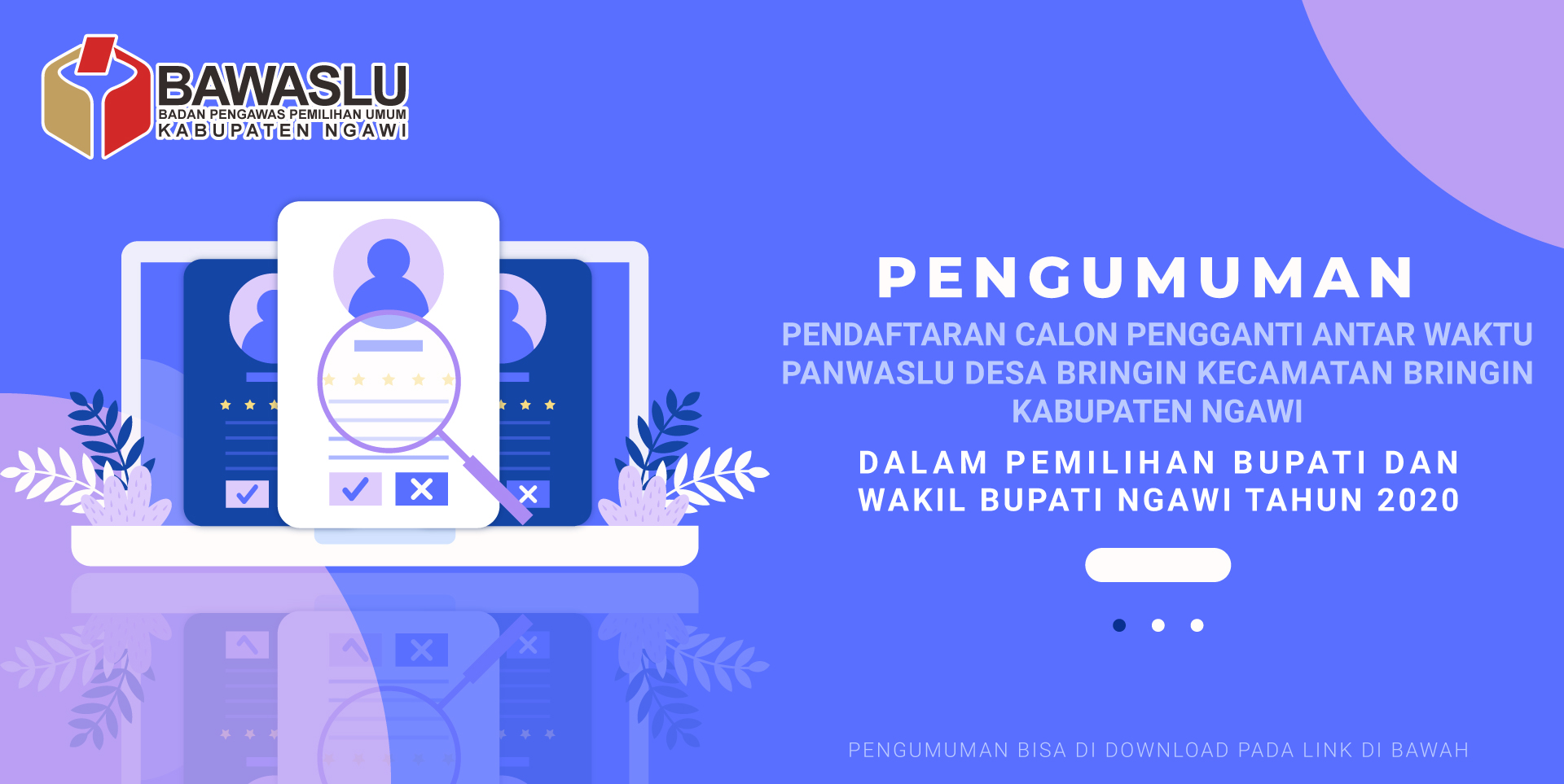 PENGUMUMAN PENDAFTARAN CALON PENGGANTI ANTAR WAKTU PANWASLU DESA BRINGIN KECAMATAN BRINGIN KABUPATEN NGAWI